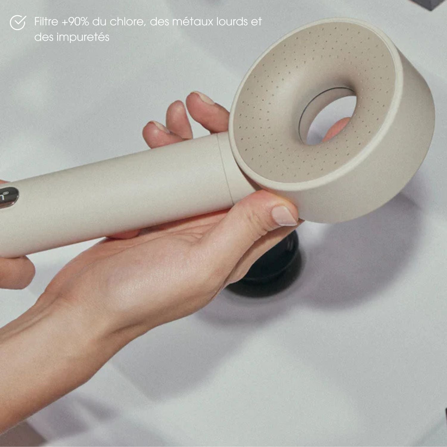 Filtration supérieure qui élimine 99% du chlore. Résultats visibles dès la première douche.